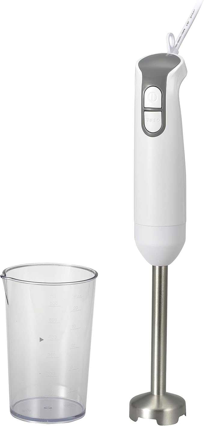 - 【商品仕様】◇本体サイズ:ブレンダー時=幅6.5×奥行6.5×高さ34cm/チョッパー時=幅12×奥行12×高さ32cm/泡立て器時=幅6×奥行6×高さ40cm ◇本体重量:ブレンダー時=540g/チョッパー時745g=/泡立て器時=530g ◇電源:AC100V(50-60Hz共用) ◇消費電力:ブレンダー・チョッパー時=120W/泡立て器時=35W ◇定格時間:ブレンダー・チョッパー時=1分(1分使用ごとに15分以上休止)/泡立て器時=2分(2分使用ごとに15分以上休止) ◇電源コードの長さ:約1.9m ◇保証期間:お買い上げ日より1年間。(保証の範囲については、取扱説明書をご確認ください。(一般家庭用以外(業務用など)に使用された場合の故障及び損傷などは保証対象外となります))