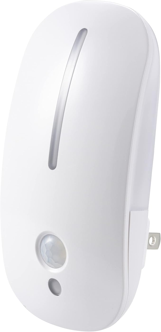 この商品は、常夜灯と人感センサーライトの機能を持っています。常夜灯は暗めの光で、目が覚めることなく使用できます。人感センサーライトは背面が点灯し、目線の高さのコンセントに取り付けることができます。光量は必要十分で、明るすぎないので、明るさを控えめにしたい人におすすめです。また、設置場所によっては反射光による点滅が起こることがあるので、注意が必要です。